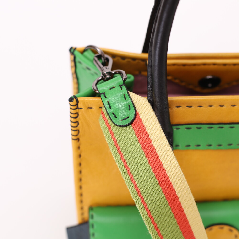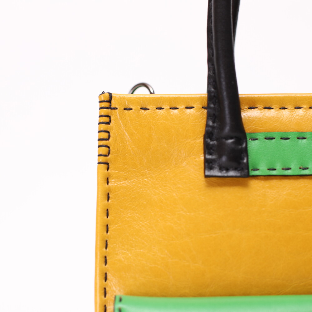 . 그린 & 옐로 가죽에 검정 바늘땀이 포인트